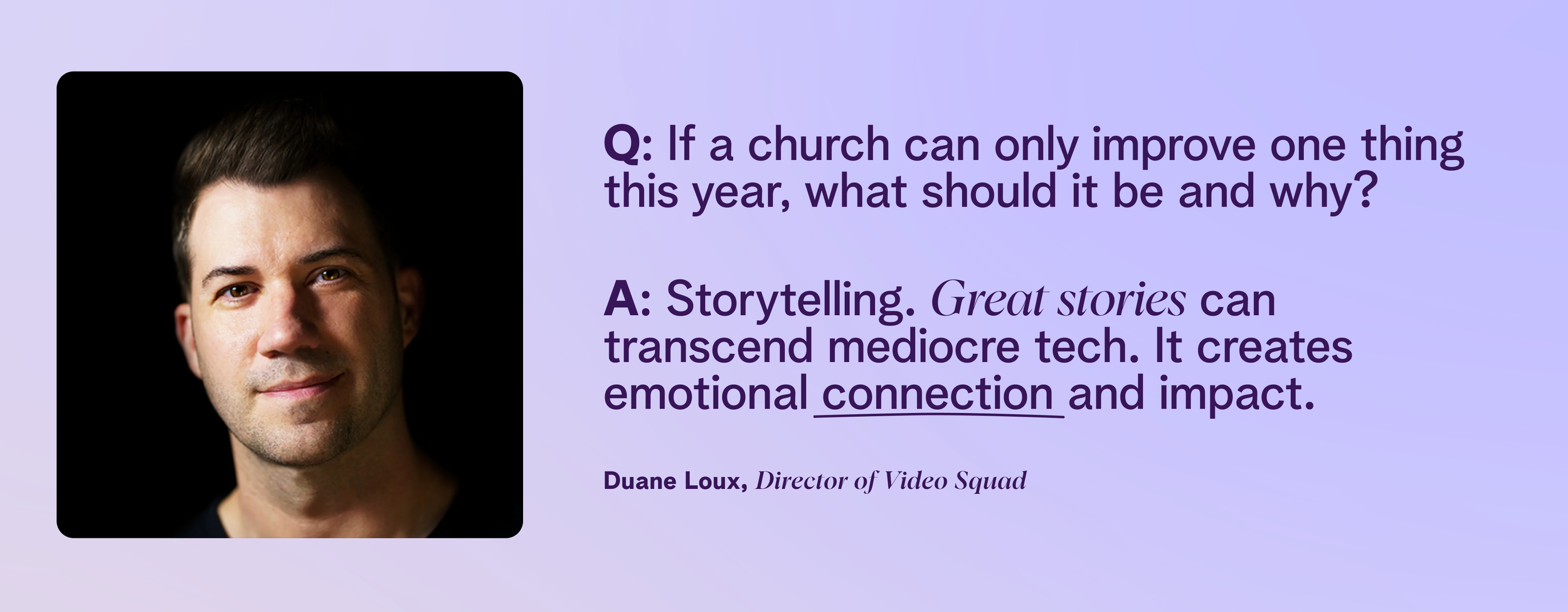 Ready to create high-quality video content without adding to your workload? Our Video Squad specializes in helping churches tell their stories well—even with limited teams and budgets. Talk to our team about video services for your church.